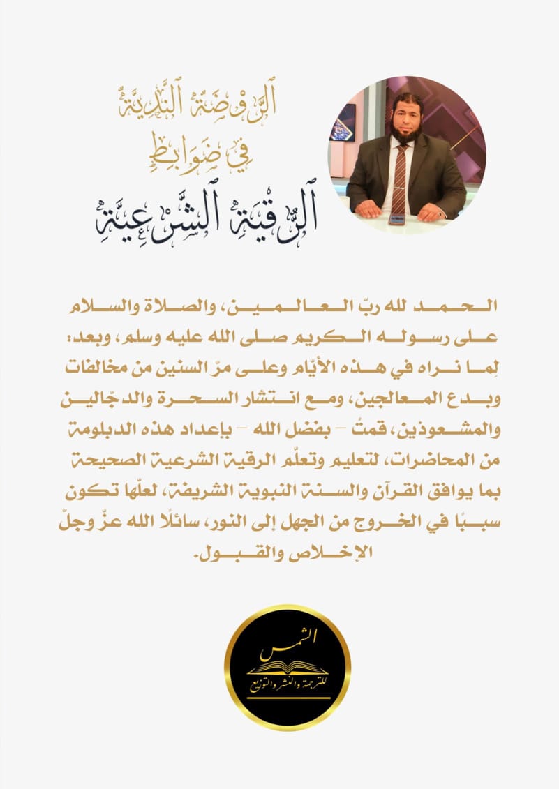 لِما نراه في هذه الأيّام وعلى مرّ السنين من مخالفات وبدع المعالجين، ومع انتشار السحرة والدجّالين والمشعوذين، قمتُ – بفضل الله – بإعداد هذه الدبلومة من المحاضرات، لتعليم وتعلّم الرقية الشرعية الصحيحة بما يوافق القرآن والسنة النبوية الشريفة، لعلّها تكون سببًا في الخروج من الجهل إلى النور، سائلًا الله عزّ وجلّ الإخلاص والقبول.
