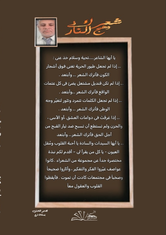 الكتاب عبارة عن خواطر مختصرة حول مجموعة صور أدبية مبسطة لبعض الشعراء الذين أثّروا فى المجتمع العربى قديماً وحديثاً ، وأثاروا جدلاً كثيراً فى الوسط الأدبي والشعرى من حيث القضايا التى تناولوها، والأفكار التى آثاروها ، والكلمات والعبارات التى أضافوها إلى اللغة العربية، وهى إختيارات أتاحتها لى سهولة توافر المادة الثقافية ، والمعرفية عن هؤلاء الشعراء الكبار بالمكتبات وعلى منصات الأنترنت