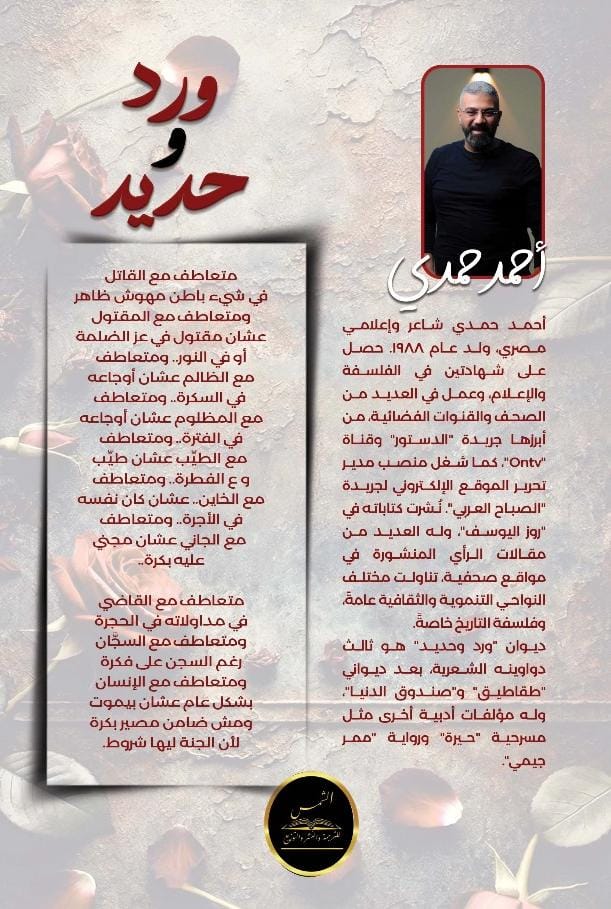 ديوان شعر بالعامية المصرية عنوانه (ورد وحديد) يحتوي على حوالي ٣٥ قصيدة متنوعة بين الرومانسية والدرامية والإنسانية.